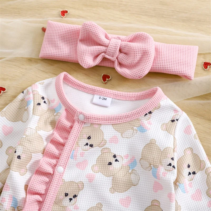 Toddler Girls 2-Piece Set Floral Print Ruffle Sleeve Top and Leggings Outfit with Matching Bow Headband Spring Clothes